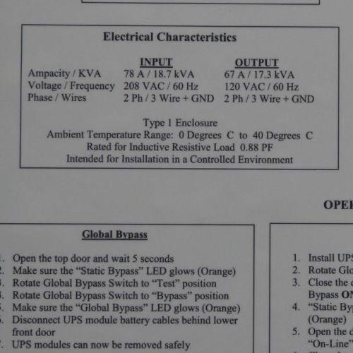 Cyberex 2200 Series 208/120V 18kVA / 9kVA N+1 Single Phase UPS