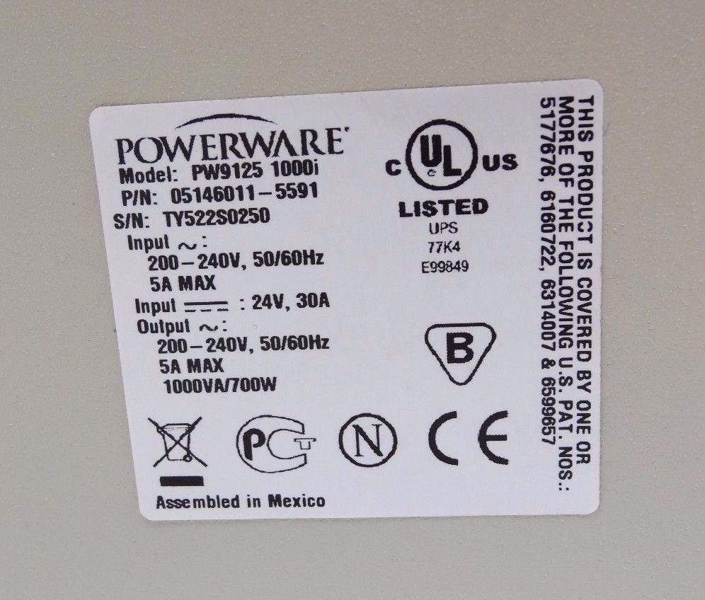 New Eaton Powerware PW9125-1000i 1000VA/700W 200-240V Intl Online UPS Back-Up