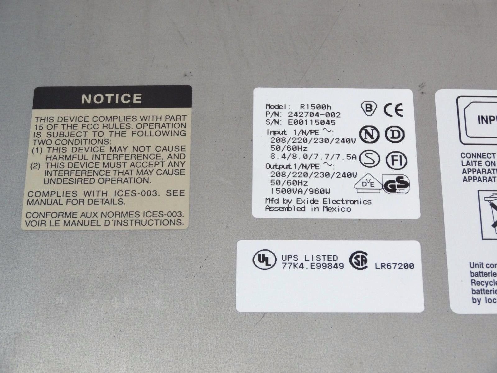 Refurbished Powerware Compaq R1500h-RM 208-240V 1500VA 960W UPS